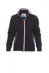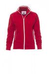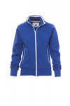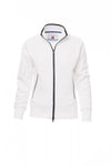 Felpa sfiancata da donna, zip intera SBS in plastica in colore a contrasto, con doppio cursore in metallo. Colletto in rib con profilo a contrasto anche alle tasche laterali, manica a giro, due tasche esterne con zip a contrasto, polsini e vita in costina elasticizzata. Cuciture rinforzate.