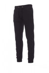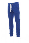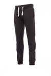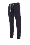 Pantalone da uomo in felpa, rib elasticizzato in vita e a fondo gamba, zip con patta, coulisse bianca in corda con cuciture in contrasto e anelle in metallo, due tasche frontali con rib e un taschino dietro, patta con zip e cuciture rinforzate.