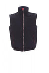 Gilet unisex, zip da 8mm a contrasto, elastico in vita, due tasche esterne con zip coperta. Interno: imbottito, micropile nel colletto e nella schiena, una tasca con cerniera e predisposzione per cuffie e cavo smartphone, zip al petto e sul fondo per agevolare stampe e ricami.
