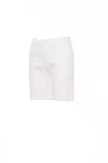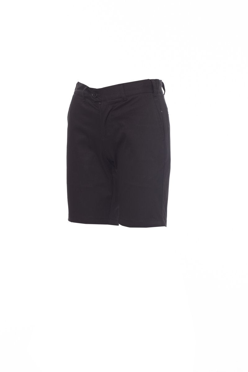 Bermuda da donna, taglio classico con tasche alla francese, chiusura con zip e bottone, vita con passanti , due tasche posteriori a filo con bottone.