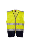 Gilet sfoderato in alta visibilità, realizzato in rete traspirante nella parte superiore e in tessuto dry-tech in colore a contrasto nella parte inferiore, con bande retroriflettenti su spalle e corpo. Chiusura con zip SBS, con nastro bicolore. A capo indossato: passante multifunzione su petto destro; banda in tessuto dry-tech per personalizzazione e porta badge fisso su petto sinistro.
