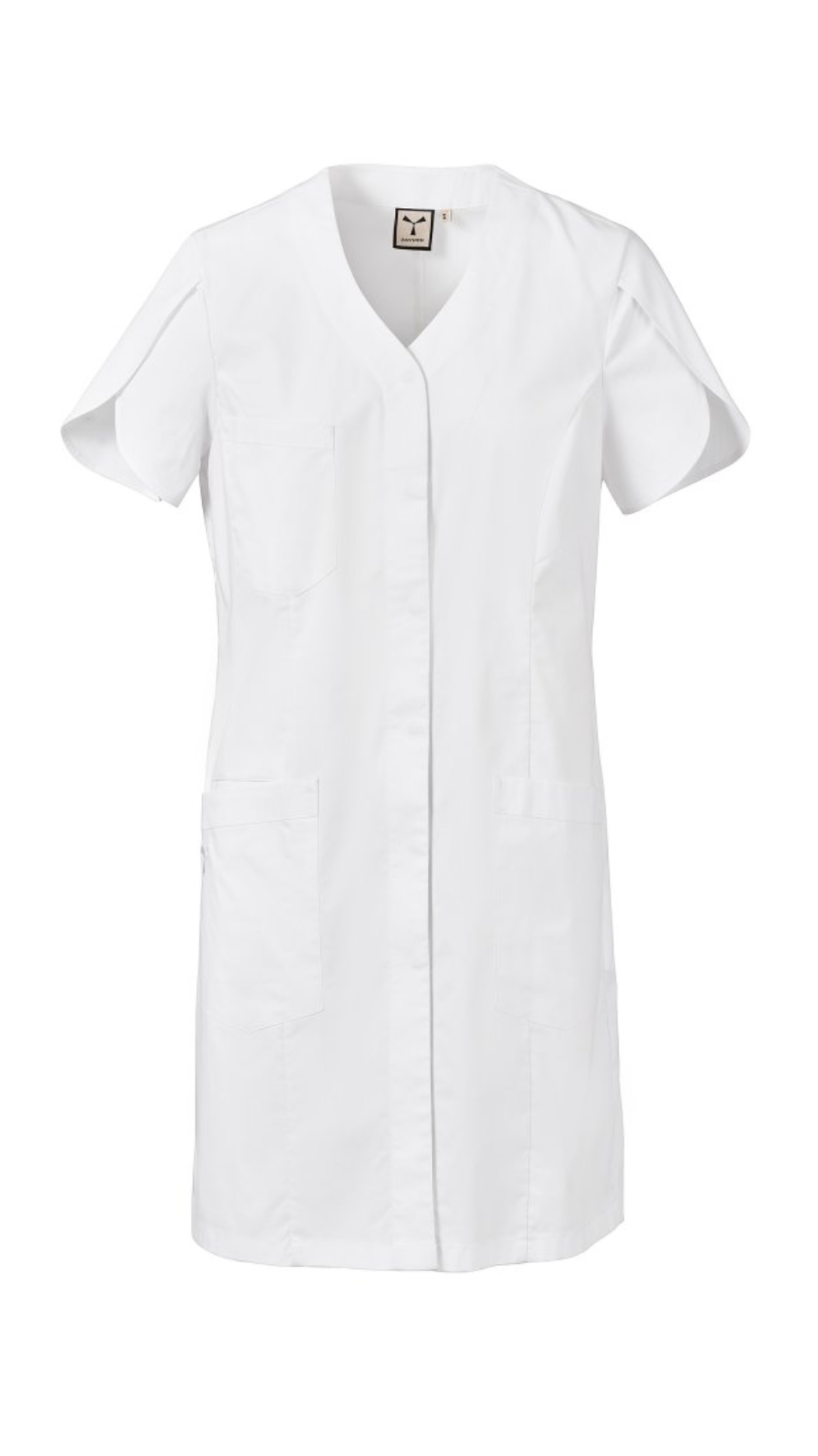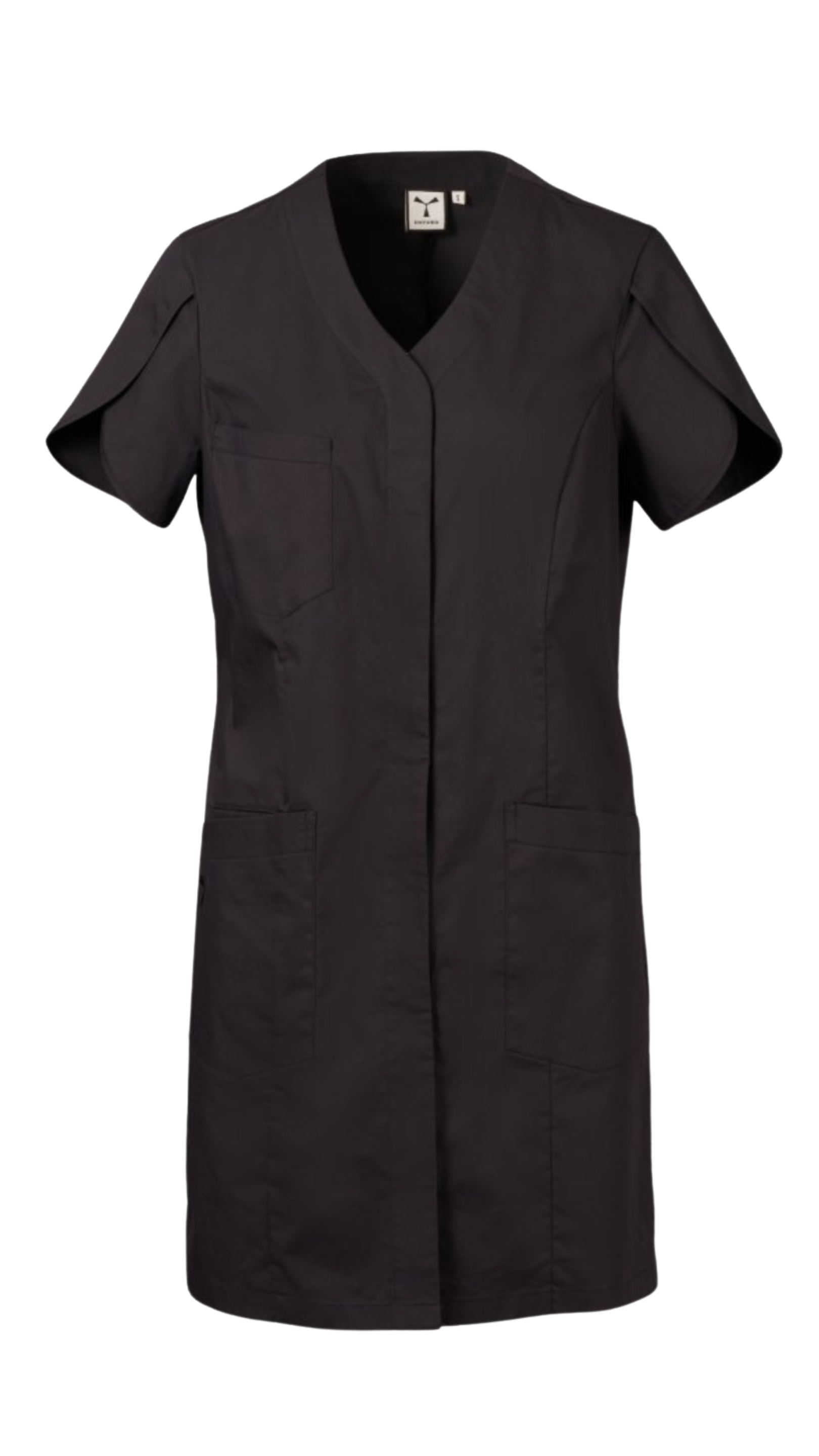 Camice da donna a manica corta a tulipano, con collo a V, realizzato in popeline di cotone, poliestere e Lycra® T400®, con ottime proprietà elastiche e traspiranti. Abbottonatura centrale coperta. Tre ampie tasche applicate: una al petto; due inferiori, di cui una con iconica elica Payper ricamata tono su tono e una tasca interna portasmartphone. Parte posteriore con taglio centrale e sui fianchi laterali. Spacco sul fondo, per agevolare i movimenti.