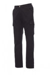Pantalone uomo, invernale, foderato con flanella in poliestere (peso 110 g/m²), elastici laterali e passanti in vita, chiusura con zip e bottone in metallo, due tasche anteriori a taglio classico, due tasche laterali con patta e bottoni automatici, una tasca con zip lato sinistro, un porta metro a scomparsa lato destro, due tasche posteriori a filo con asola e bottone.