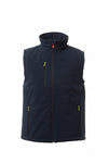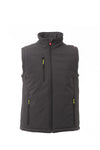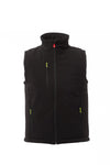 WP 8000 mm H₂O, WVT 5000 g/m² 24h. Gilet soft-shell imbottito da uomo, chiusura tramite zip con cursore in metallo "semi-auto lock" e tiretto personalizzato. Due tasche laterali e una tasca al petto, chiuse con zip. Tiretti fluorescenti. Due tasche interne, una sagomata con zip e una porta tablet chiusa con velcro. Fondo regolabile con stopper personalizzati.