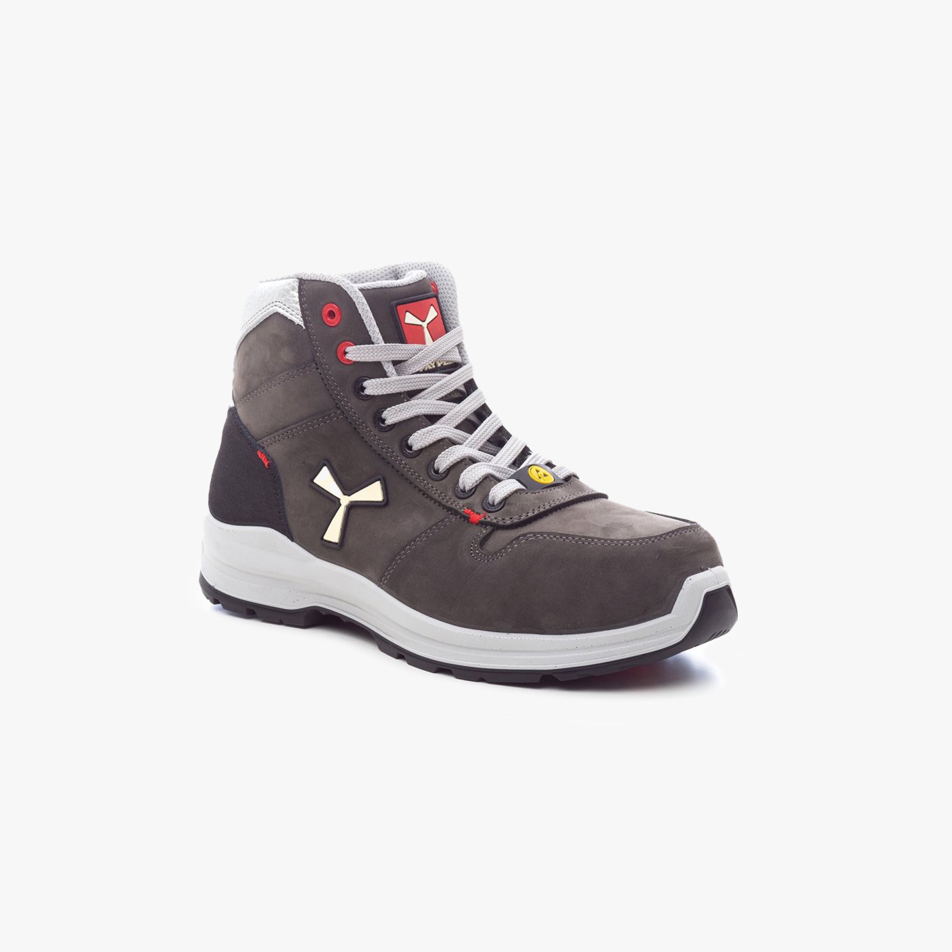 Scarpa di sicurezza MADE IN ITALY antistatica medium da donna, tomaia in pelle idrorepellente e traspirante, fodera interna (per tutta la superficie interna) traspirante e resistente all'abrasione, 8+8 occhielli metalfree, paratacco in grana pampas con inserto riflettente, puntale in alluminio pressofuso, plantare estraibile Ortholite X40 016, soletta in lamina tessile certificata antiperforazione, cambrione anti-torsione, sottopuntale a ferro di cavallo, intersuola in poliuretano ultraleggero, ammortizzatore MASTER BALANCE in PU polietere ad alta tenacità e densità bilanciata, suola XTRAIL GRIP in TPU con paratacco e parapunta.