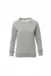 Felpa da donna con maniche raglan, collo ampio con rib elasticizzato, polsini e vita in rib elasticizzato.
