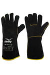 Guanto per saldatori interamente in crosta bovina, lungo 34 cm. Fodera interna in: tessuto garzato sul palmo e dorso e manichetta in tessuto drill. Cuciture in filato para-aramidico.  Caratteristiche: morbido, robusto, resistente - Punti di forza: comfort, presa, protezione, precisione - Campi d’impiego: adatto a manipolazione di oggetti spigolosi, ruvidi, abrasivi e caldi, ad operazioni di saldatura, smerigliatura e sbavatura, pulizia impianti, falegnameria e carpenteria metallica.