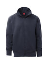 Felpa da uomo, a zip intera in plastica in tinta con cursore singolo personalizzato, manica a giro, due tasche a filetto con zip, polsini e vita in costina elasticizzata, cuciture rinforzate, nastro di rinforzo interno collo in tinta.