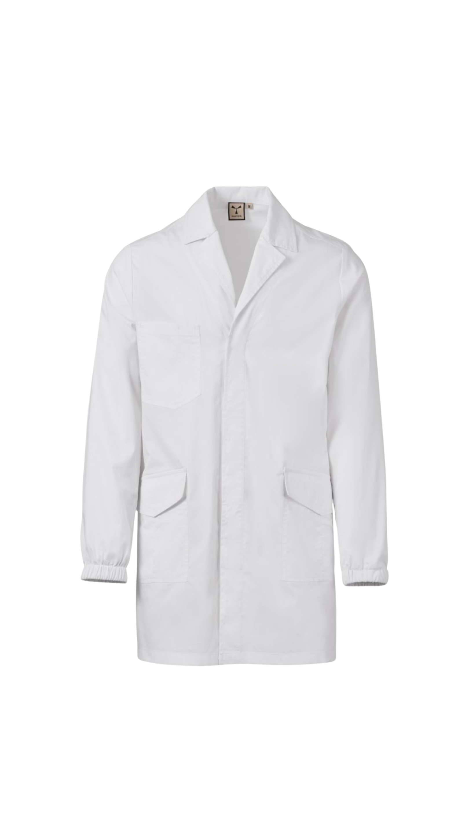 Camice lungo da uomo, con collo rever classico, realizzato in popeline di cotone, poliestere e Lycra® T400®, con ottime proprietà elastiche e traspiranti. Abbottonatura coperta, manica lunga con elastico stringi polso. Tre ampie tasche applicate: una sul petto con scomparto porta penne; due inferiori con patta, di cui una con iconica elica Payper ricamata tono su tono. Retro liscio, per un'estetica più pulita.