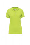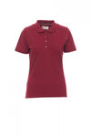 Polo sfiancata da donna a manica corta con 4 bottoni in tinta effetto perlato, colletto e bordo manica a costine, spacchetti laterali, cuciture del collo coperte con nastro a contrasto, cuciture stretch, nastro di rinforzo laterale, rinforzo sagomato retro collo.